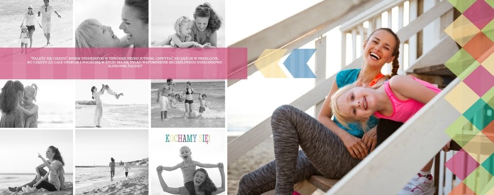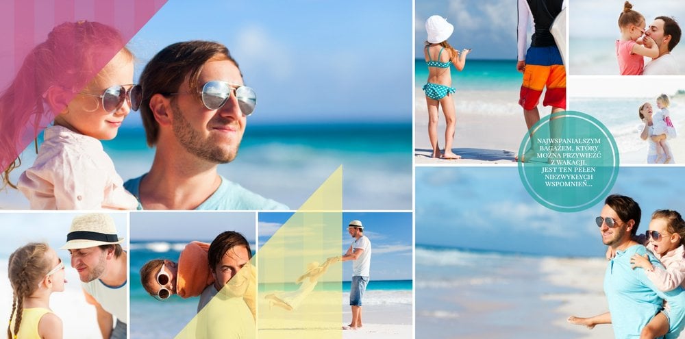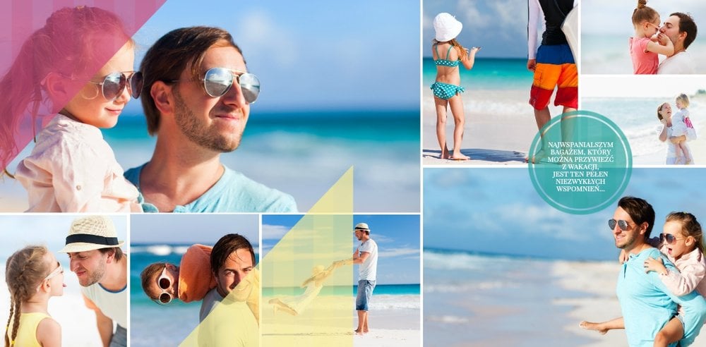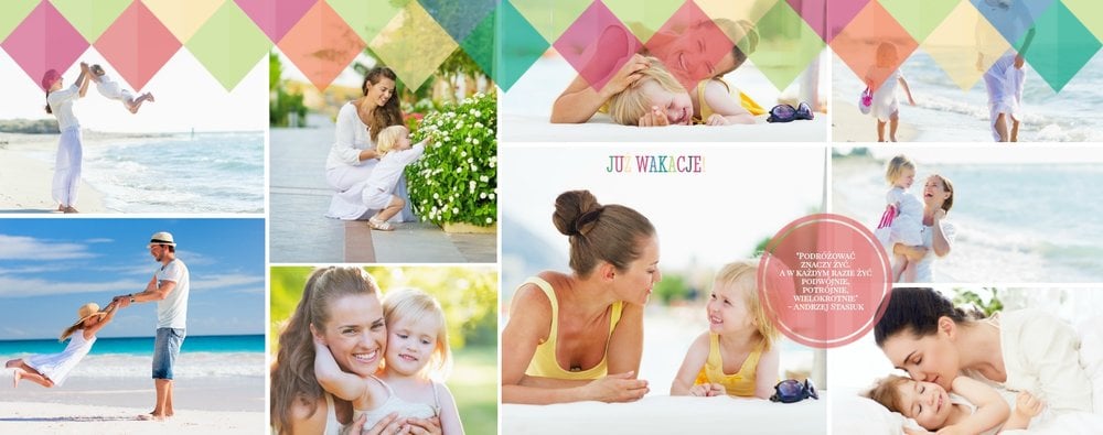 Szablon Pamiętniki z wakacji powstał z myślą o tych, którzy chcą nadać rodzinnym wspomnieniom odpowiednią formę. Wystarczy wybrać zdjęcia z domowego archiwum i skomponować fotoopowieść wykorzystując zaproponowane rozwiązania. W szablonie postawiliśmy na rodzinny klimat, oryginalne układy i różnokolorowe tła. Daj się ponieść swojej wyobraźni i stwórz wyjątkową fotoksiążkę, która stanie się pamiątką na całe życie!