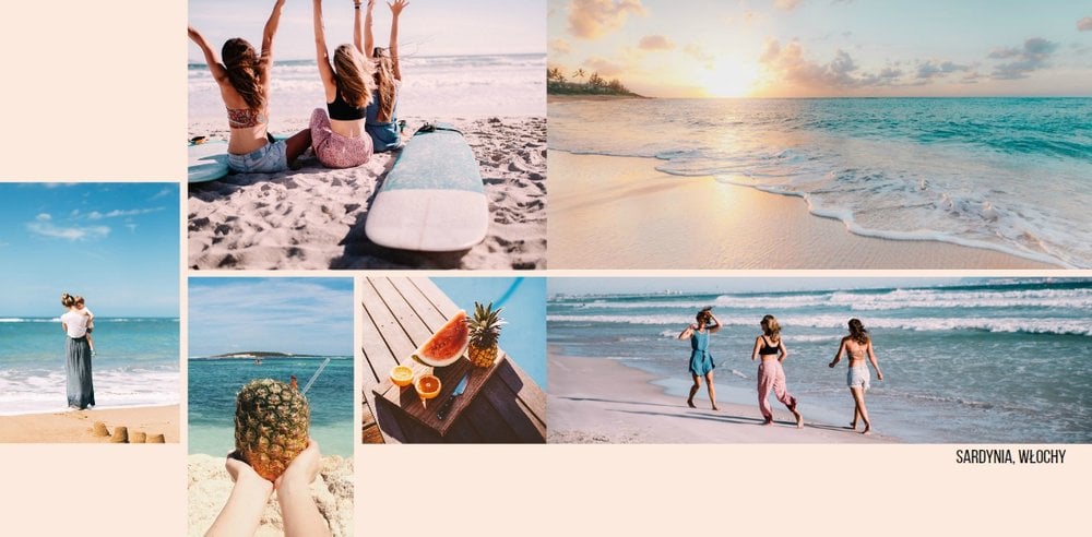 Zachowaj wszystkie letnie ujęcia w szablonie "Pastelowy minimalizm"! Stworzony na podstawie ponadczasowego projektu fotoksiążki "Wakacyjny minimalizm" z zachowaniem nowoczesnego układu zdjęć, wzbogacony paletą ośmiu pasujących do siebie kolorów. Jasna, pastelowa tęcza idealnie skomponuje się z letnimi zdjęciami, podkreślając ich urok.