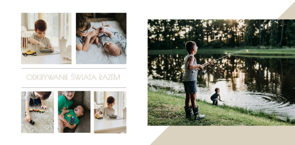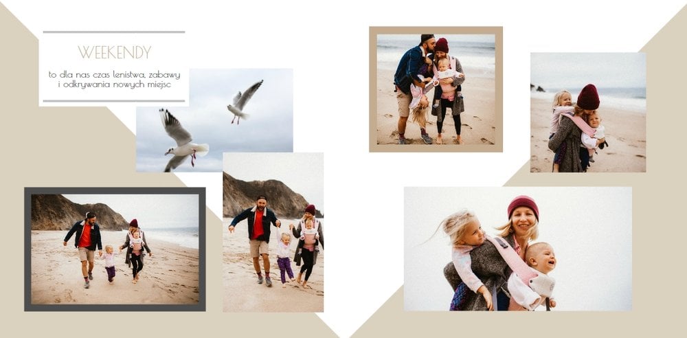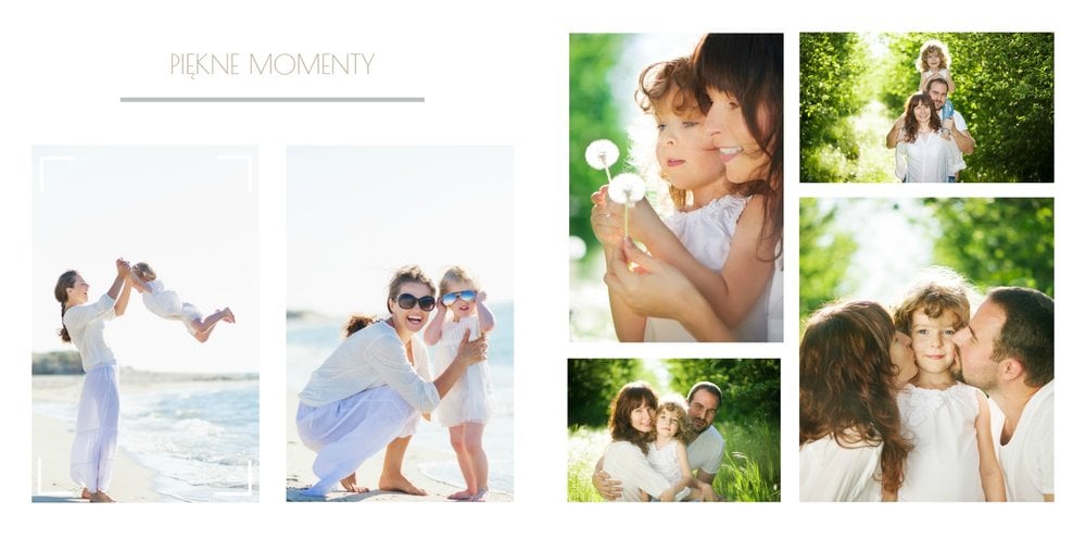 Chcesz stworzyć szablon, którego z pewnością nikt jeszcze nie posiada? Nic prostszego! Wybierz ulubione fotografie i zaprojektuj pustą przestrzeń. Możesz dowolnie modyfikować tła, układy stron i teksty. Daj się ponieść wyobraźni i stwórz z Printu niepowtarzalną pamiątkę! Szablon Piękne wspomnienia jest uniwersalny, postawiliśmy na delikatną kolorystykę – białe tła, beżowe i szare dodatki, które idealnie skomponują się z Twoimi fotografiami.