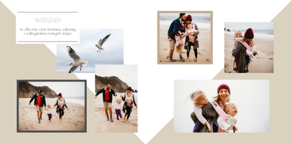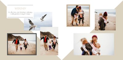 Chcesz stworzyć szablon, którego z pewnością nikt jeszcze nie posiada? Nic prostszego! Wybierz ulubione fotografie i zaprojektuj pustą przestrzeń. Możesz dowolnie modyfikować tła, układy stron i teksty. Daj się ponieść wyobraźni i stwórz z Printu niepowtarzalną pamiątkę! Szablon Piękne wspomnienia jest uniwersalny, postawiliśmy na delikatną kolorystykę – białe tła, beżowe i szare dodatki, które idealnie skomponują się z Twoimi fotografiami.