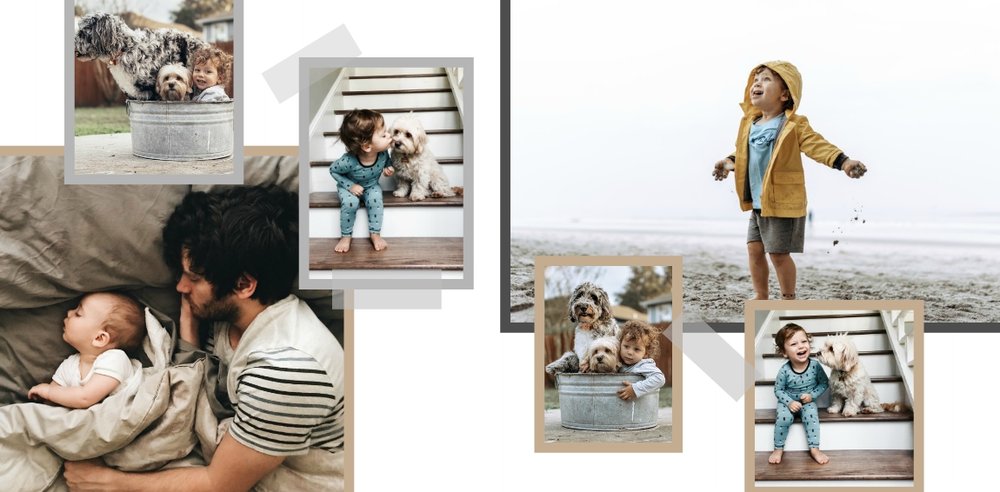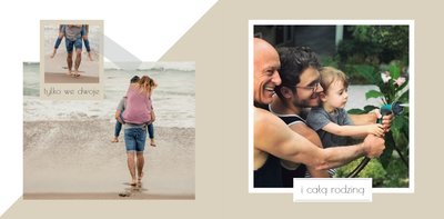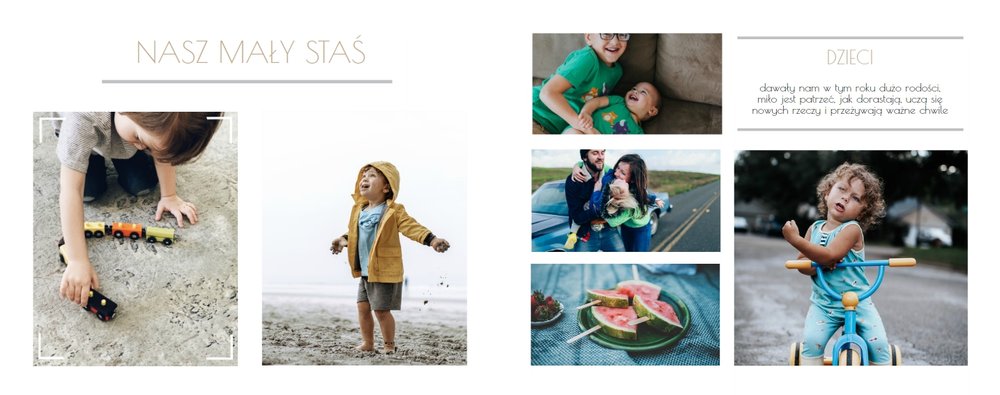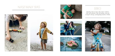 Chcesz stworzyć szablon, którego z pewnością nikt jeszcze nie posiada? Nic prostszego! Wybierz ulubione fotografie i zaprojektuj pustą przestrzeń. Możesz dowolnie modyfikować tła, układy stron i teksty. Daj się ponieść wyobraźni i stwórz z Printu niepowtarzalną pamiątkę! Szablon Piękne wspomnienia jest uniwersalny, postawiliśmy na delikatną kolorystykę – białe tła, beżowe i szare dodatki, które idealnie skomponują się z Twoimi fotografiami.