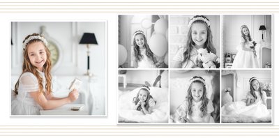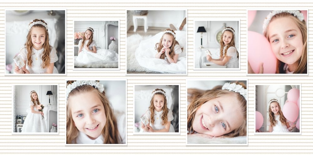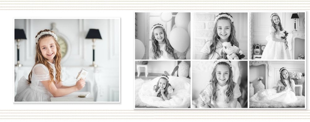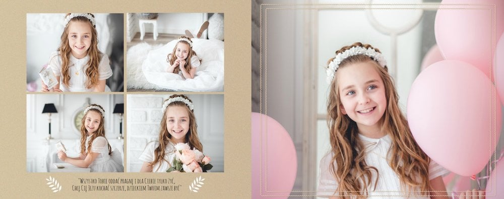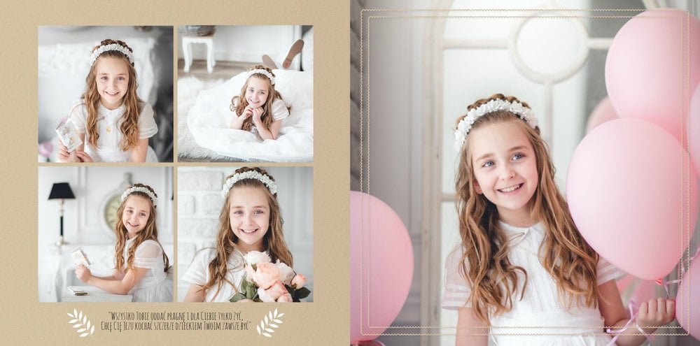 Możesz zadecydować o kolorystyce, sposobie rozmieszczenia zdjęć, detalach graficznych, podpisach, rodzaju papieru oraz rozmiarze unikalnej fotoksiążki; komunia święta zostanie przedstawiona tak, jak chcesz.