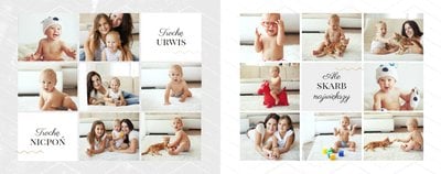 Pierwszy rok życia dziecka to piękny szablon dziecięcy, który ozdobi wszystkie zdjęcia z pierwszych miesięcy życia malucha. Specjalna metryczka, mnóstwo miejsca na ulubione fotografie, piękne cytaty i stonowane kolory podkreślą wyjątkowość rodzinnej fotoksiążki. Zbierzcie wspólnie pamiątkowe zdjęcia z najważniejszych chwil życia Waszego dziecka i zaprojektujcie wyjątkową fotoksiążkę!