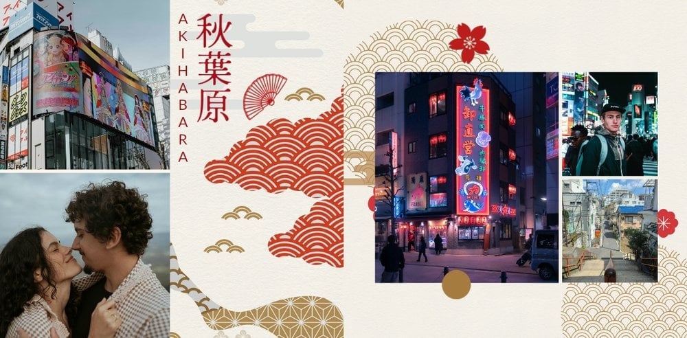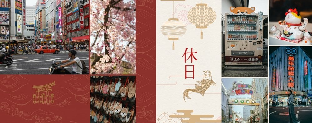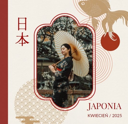 Styl szablonu to pomieszanie tradycji z nowoczesnością. Na każdej stronie projektu odnajdziesz orientalne wzory i charakterystyczne ilustracje, nawiązujące do japońskiej kultury. Maneki-neko, świątynie, rybki koi, fale - to tylko kilka z wielu motywów, które możesz znaleźć na stronach fotoksiążki. Szablon "Podróż do Japonii" wypełniony jest tłami z elementami kolażu zainspirowanymi japońską sztukę składania papieru - origami. Nazwy głównych turystycznych kierunków wyjazdu do Japonii (takich jak Tokio, Kioto, Osaka czy Nara), zapisane są zarówno w Kanji jak i po polsku. Możesz więc śmiało dostosować je pod swój plan podróży.