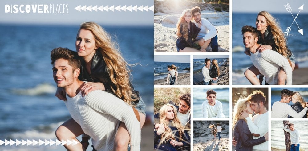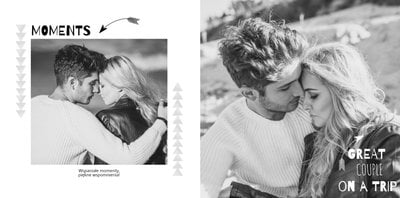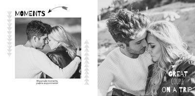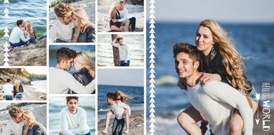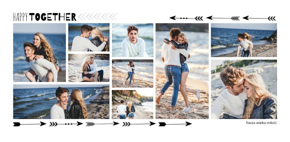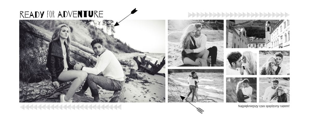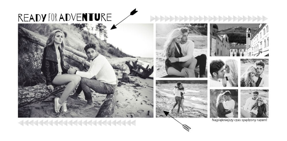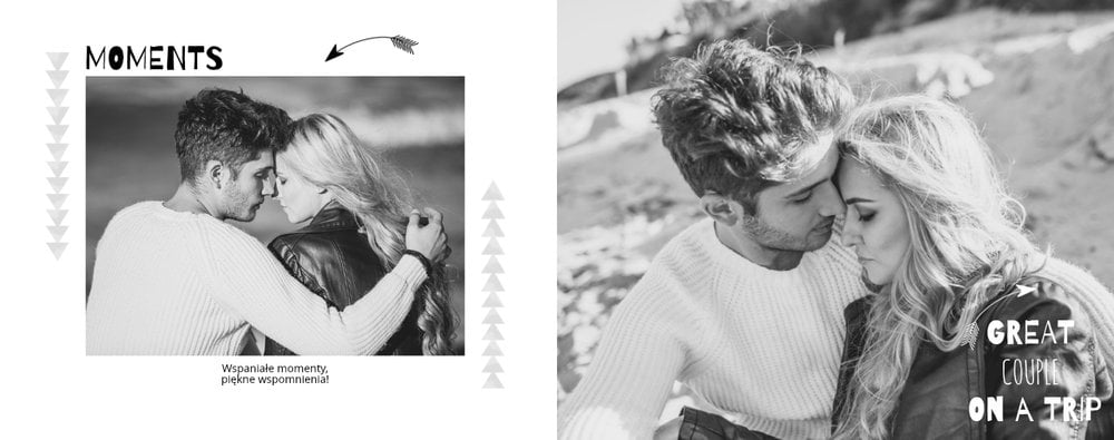 Podróż poślubna to szablon z którym zaprojektujesz wyjątkową fotoksiażkę z Waszego miesiąca miodowego. Zbierz najpiękniejsze wspomnienia zamknięte w zdjęciach i skomponuj pamiątkę na długie lata. Nowoczesny szablon z oryginalnymi układami zdjęć i grafiką pozwolą cieszyć się Wam wyjątkową oprawą.