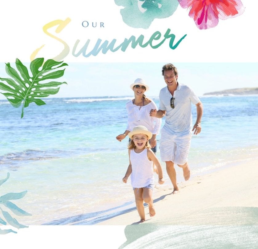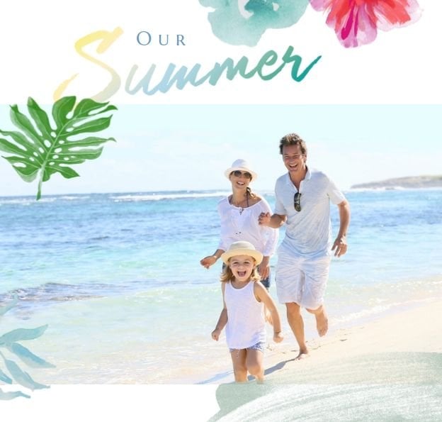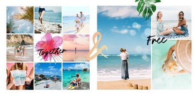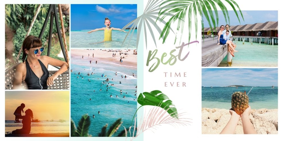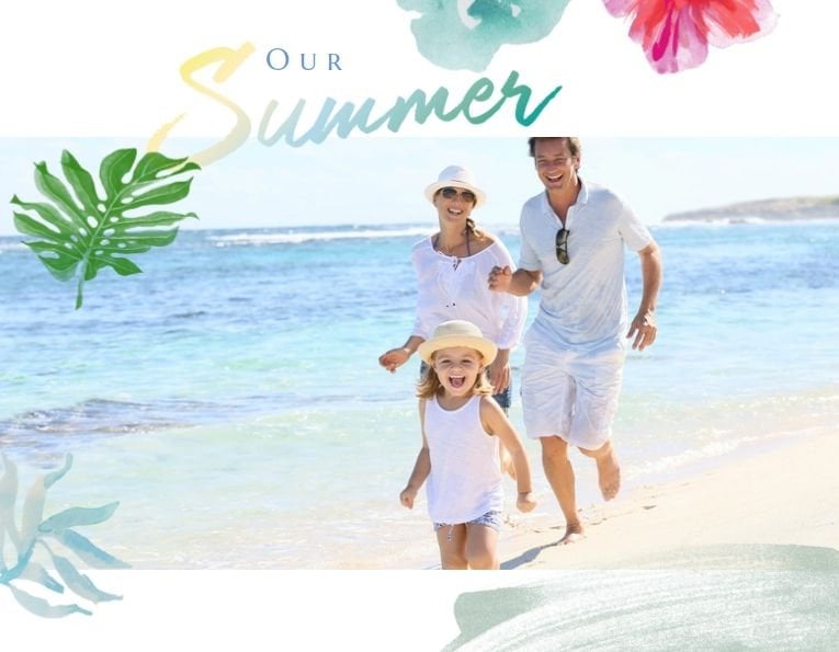Minimalistyczna forma szablonu pozwala na zachowanie zdjęć z każdej strony świata - ważne aby fotografie pokazywały jak świetnie bawiłeś się na wakacjach życia. Całość dopełniają napisy oraz graficzne elementy symbolizujące lato w pełni.