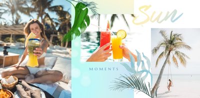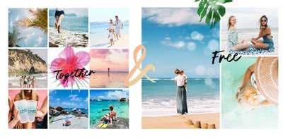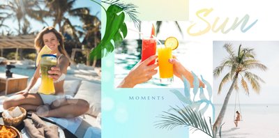 Minimalistyczna forma szablonu pozwala na zachowanie zdjęć z każdej strony świata - ważne aby fotografie pokazywały jak świetnie bawiłeś się na wakacjach życia. Całość dopełniają napisy oraz graficzne elementy symbolizujące lato w pełni.