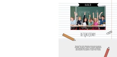 Do każdych gotowych tekstów warto dodać coś od siebie, tak by album pamiątkowy dla Wychowawcy zyskał na indywidualności. Słowa wdzięczności można wyrazić na przykład poprzez wiersz. Jeśli uczniowie stworzą go sami, opiekun będzie pod ogromnym wrażeniem. W projekcie jest też miejsce na życzenia - te z kolei mogą znaleźć się na ostatniej stronie. Będą stanowić piękne zakończenie pamiątkowego albumu dla Wychowawcy.