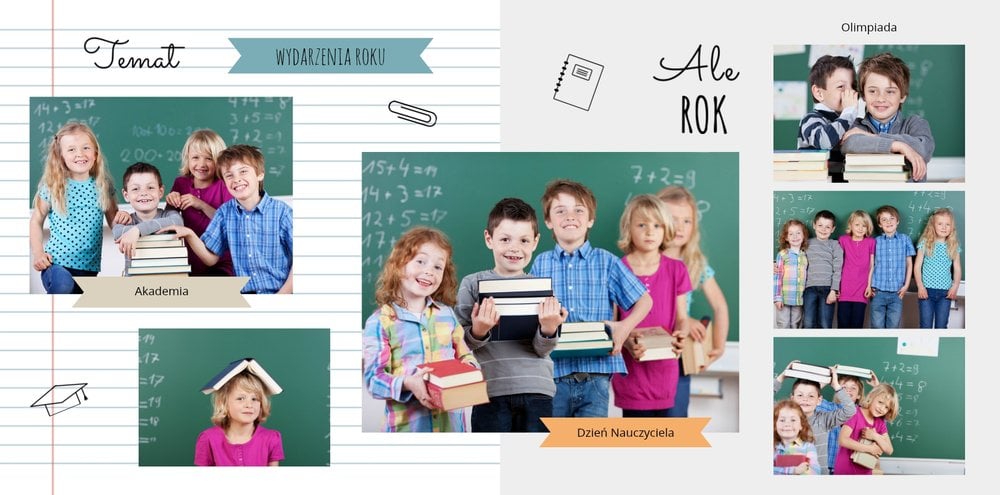 Kiedy wraz z pozostałymi rodzicami postanowicie, że Wasze dzieci wręczą album dla Nauczyciela, kolejnym krokiem będzie wybór zdjęć. Z pewnością każda z Mam ma mnóstwo fotografii ze szkolnych akademii czy klasowych wycieczek. Do wyboru pozostałych zdjęć na pewno zainspiruje Cię szablon.