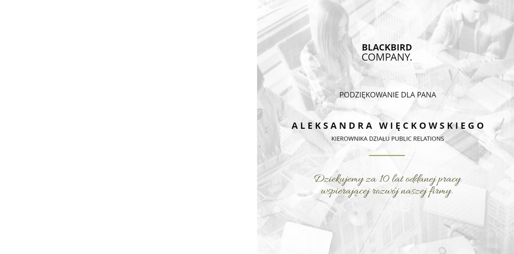 Podziękowania dla pracownika to szablon z którym zaprojektujesz wyjątkowy album z podziękowaniami za współpracę. Każda firma chce docenić pracę swoich pracowników, dlatego powstał nasz oryginalny szablon. Wyjątkowa grafika, specjalne życzenia pozwolą zaprojektować fotoksiążkę, która stanie się pięknym podziękowaniem dla każdego pracownika.