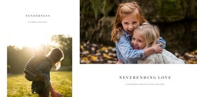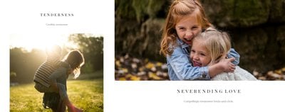 Z szablonem Portfolio Fotografa zaprojektujesz profesjonalne portfolio, które będzie oryginalną wizytówką i zbiorem wszystkich Twoich najlepszych prac. Wyjątkowy układ szablonu pozwoli Ci na wyeksponowanie najlepszych zdjęć. Fotoksiążka z szablonem Portfolio Fotografa to świetny i prosty sposób na szerszą prezentację swoich fotograficznych umiejętności.