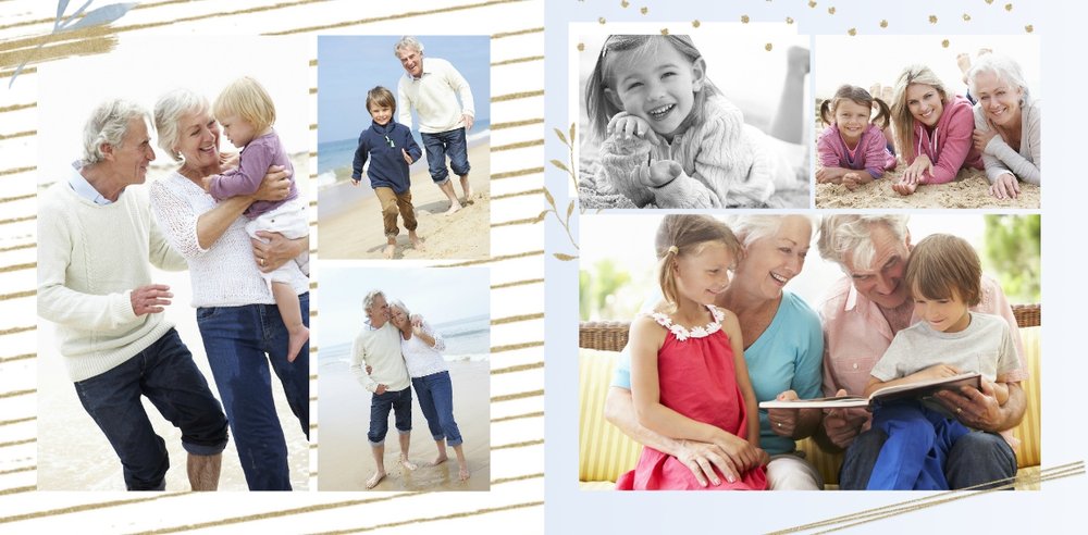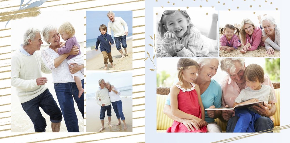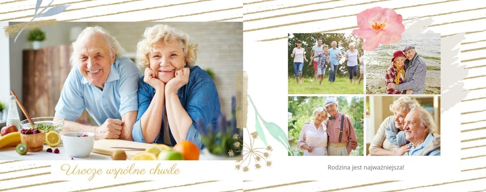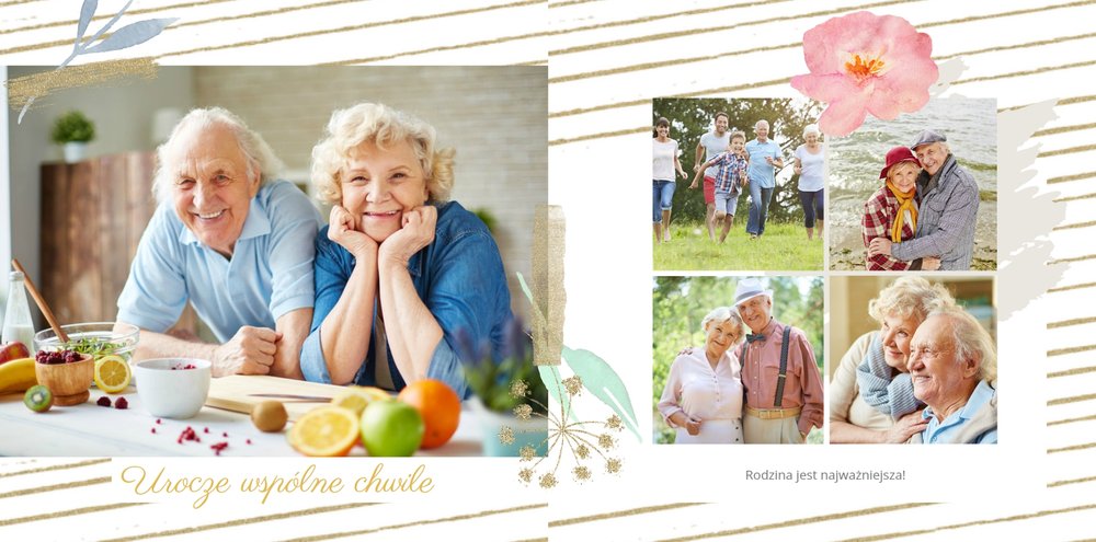 Szablon Prezent dla Babci i Dziadka idealnie sprawdzi się przy projektowaniu wyjątkowego prezentu dla dziadków. Piękna grafika i wzruszające sentencje sprawią, że fotoksiążka z tym szablonem będzie pamiątką na długie lata. Wybierz najbardziej wzruszające fotografie i zaprojektuj Prezent dla Babci i Dziadka.