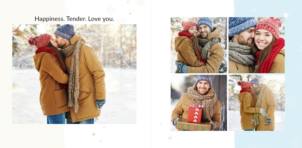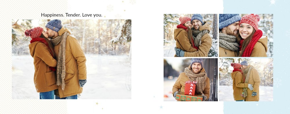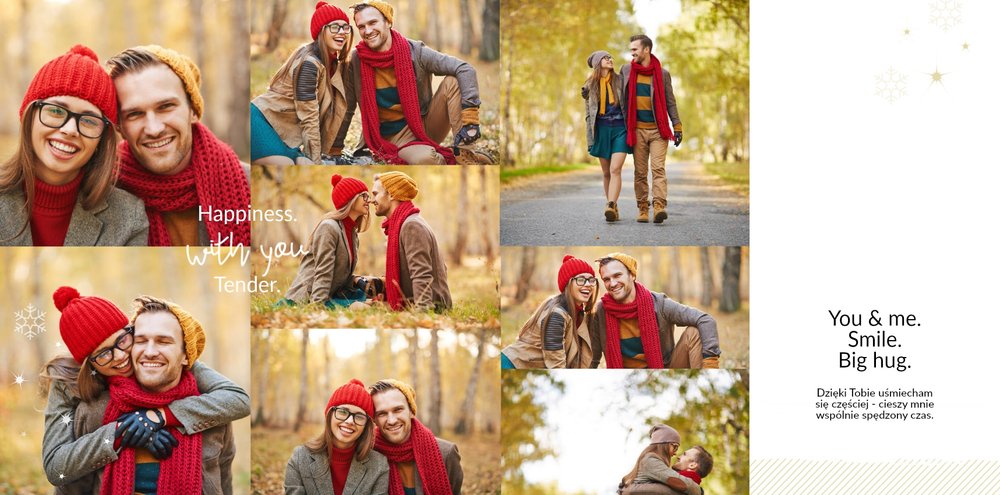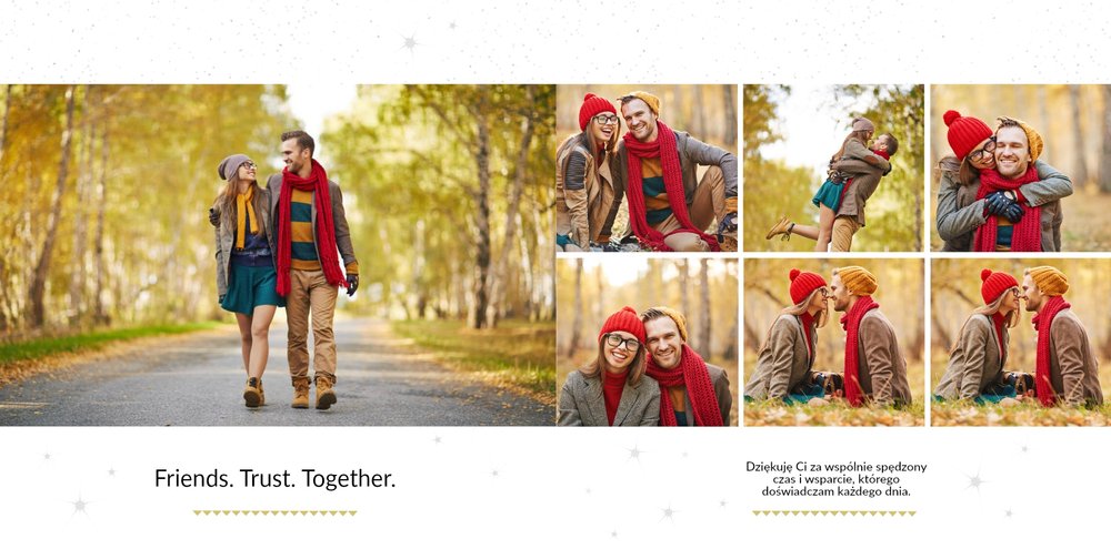 Poszukujesz oryginalnego prezentu dla chłopaka na święta? Ze świątecznym szablonem Prezent dla chłopaka na święta zaprojektujesz niezwykły upominek. Zbierz wszystkie wspólne zdjęcia i stwórz książkę po brzegi wypełnioną miłością. Zapewniamy, że fotoksiążka podarowana w prezencie na święta Bożego Narodzenia będzie pamiątką na długie lata.