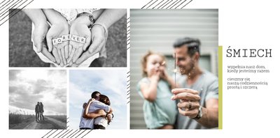 Prezent dla męża to szablon, który sprawdzi się jako oryginalny upominek na święta czy prezent urodzinowy. Fotoksiążka z takim szablonem to także idealny pomysł na walentynkowy prezent dla męża - zamkniesz w niej wszystkie wspólnie spędzone chwile i ogrom wspomnień. Minimalistyczne tła, delikatna grafika oraz ozdobione sentencjami strony szablonu wysuną zdjęcia na pierwszy plan. Spraw radość swojej drugiej połówce wręczając wyjątkowy prezent!