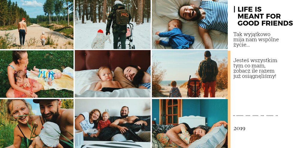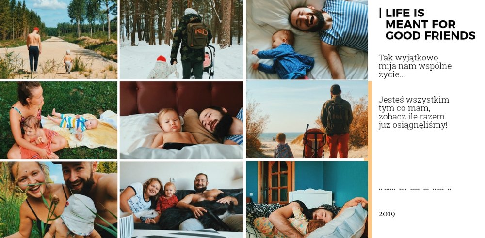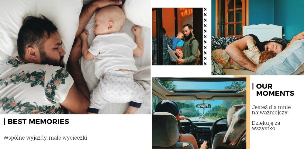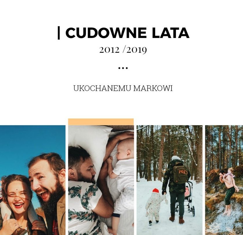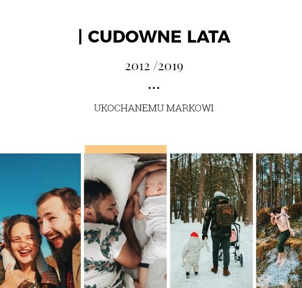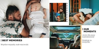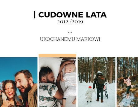 Fotoksiążka z szablonem Prezent dla niego, to świetny pomysł na prezent dla Twojego mężczyzny. Każda okazja jest dobra, żeby sprawić radość ukochanej osobie! Sprawdź co kryje ten wyjątkowy szablon - oryginalna grafika, wzruszające sentencje i mnóstwo miejsca na zdjęcia upamiętniające Wasze wspólne chwile. Prezent dla niego to szablon z którym fotoksiążka stanie się piękną pamiątką na wiele, wiele lat.