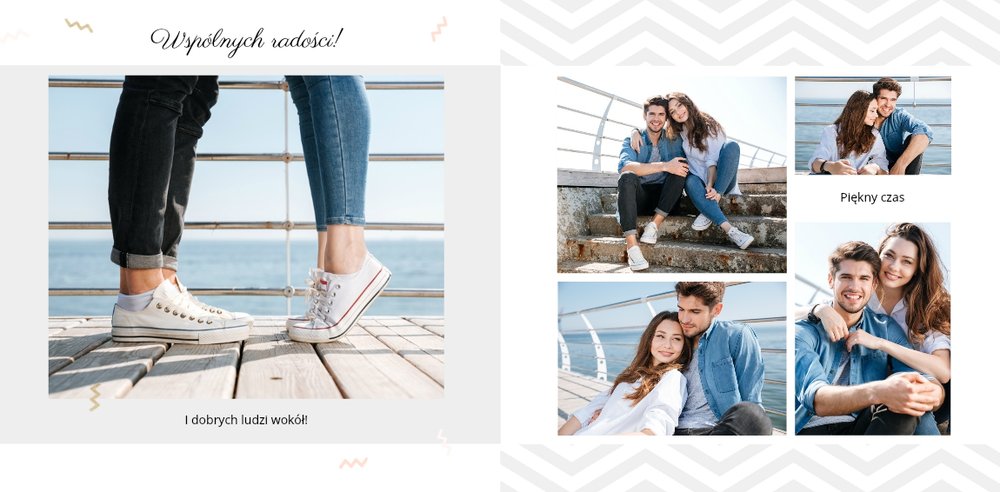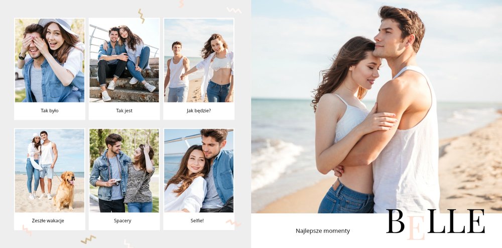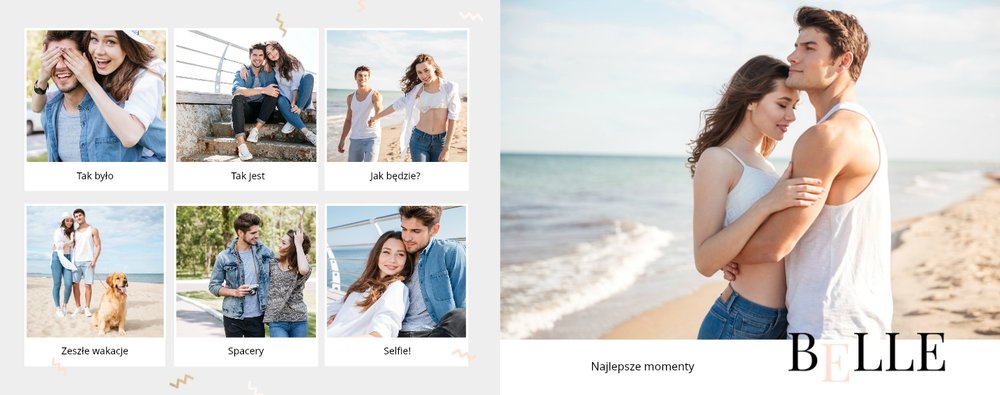 "Prezent dla niej" to uniwersalny szablon dla każdej kobiety. Fotoksiążka z pięknymi zdjęciami, miłymi życzeniami i pozytywnymi emocjami okaże się trafionym upominkiem nawet dla najbardziej wymagających kobiet. Piękne, pudroworóżowe tła, motywy w kolorach szarości i gotowe napisy w języku francuskim oryginalnie przyozdobią każdą fotografie. Z tym szablonem stworzysz wyjątkową fotoksiążkę dla wyjątkowej kobiety!
