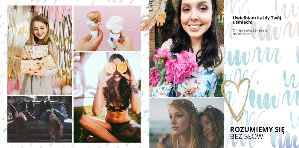 Zdjęcia możesz uszeregować chronologicznie (od początku znajomości) lub stworzyć album na Wasze wspólne zdjęcia z ostatnich wakacji czy najbardziej szalonych imprez. Nie zapomnij dodać kilku słów od siebie w postaci podpisów, życzeń od serca lub trafnych cytatów.