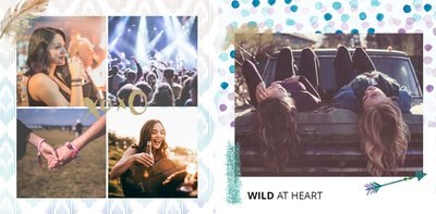 Szablon albumu dla przyjaciółki, choć cechuje się minimalistyczną okładką, skrywa w sobie wiele magii i uroku. Wszystko dzięki gustownym, kolorowym grafikom, które uzupełniają kartki albumu. Zajrzyj do naszego edytora i sprawdź, jak szablon dla przyjaciela będzie prezentował się w połączeniu z Twoimi zdjęciami!