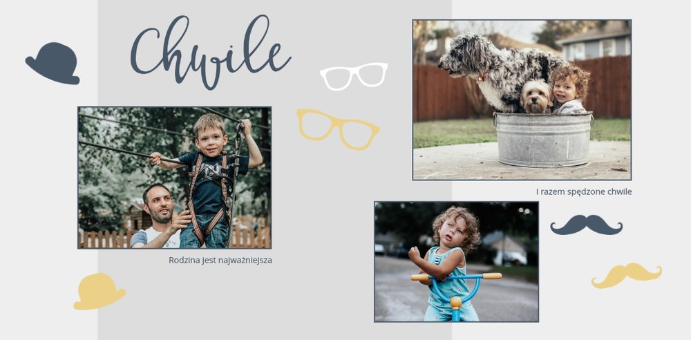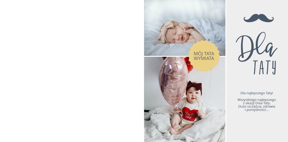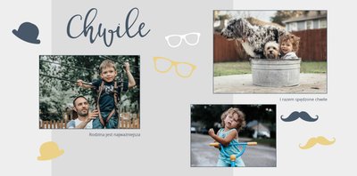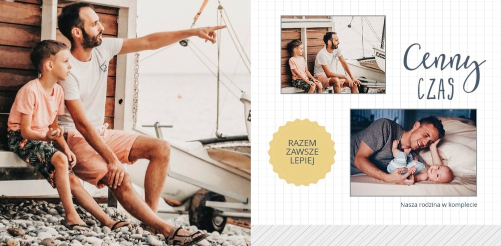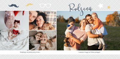 Piękne, rodzinne chwile warto celebrować i utrwalać w pamięci. Fotoksiążka pełna zdjęć bliskiej rodziny będzie najpiękniejszym prezentem dla każdego Taty. Szablon Prezent dla taty dedykujemy wszystkim, którzy chcą podarować swojemu Tacie coś wyjątkowego. Szare delikatne tła idealnie skomponują się z rodzinnymi fotografiami lub skanami zdjęć. Fotoksiążka zaprojektowana z tym szablonem będzie idealnym prezentem na Dzień Ojca oraz wiele innych ważnych okazji.