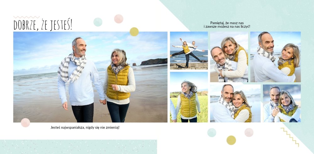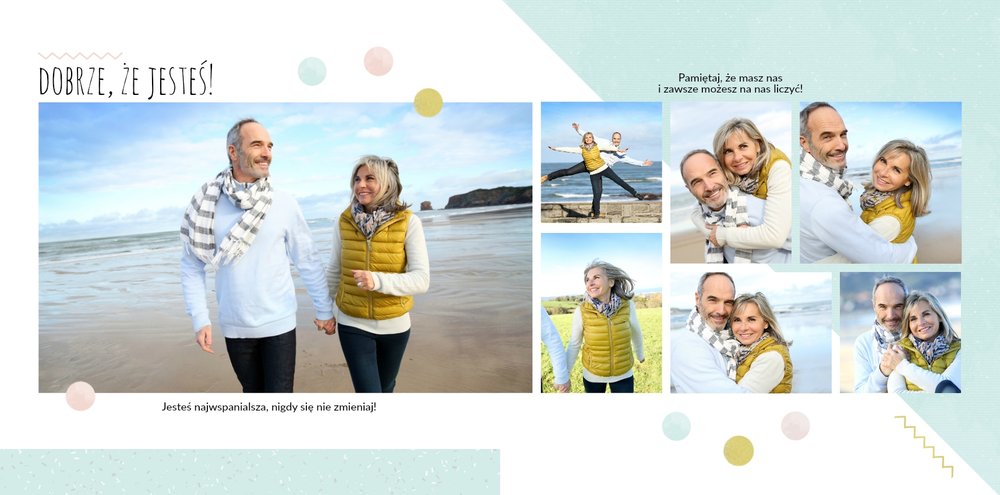 Z szablonem Prezent dla Teściowej zaprojektujesz piękną fotoksiążkę, która okaże wdzięczność za całe dobro, które wniosła do Waszego wspólnego życia. Wyjątkowa grafika i wzruszające sentencje sprawią, że fotoksiążka z tym szablonem będzie idealnym prezentem dla Teściowej na każdą okazję. Spraw radość najbliższej Ci osobie i stwórz książkę, która będzie pamiątką na wiele, wiele lat.