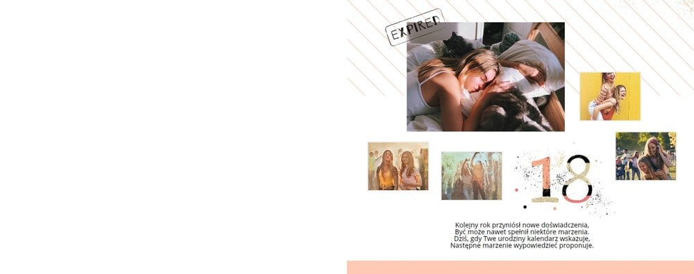 „Prezent na 18” to jednak nie jedyny szablon, który możesz wykorzystać w tworzeniu albumu na 18 urodziny. Zajrzyj do kategorii szablonów urodzinowych (kliknij tutaj) i poznaj inne propozycje graficzne, które równie świetnie sprawdzą się w tym temacie.