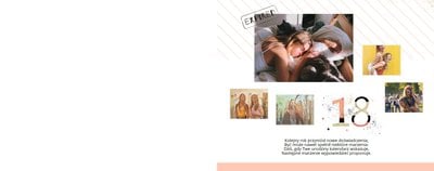 Idealnym szablonem do stworzenia albumu na 18 urodziny jest ten o nazwie „Prezent na 18”. Minimalistyczna, a zarazem zachowana w przyciągających uwagę kolorach kompozycja fotoksiążki na 18 przypadnie do gustu każdemu – niezależnie od płci. Charakter fotoksiążki na 18 urodziny dodatkowo podkreślają urodzinowe elementy graficzne i luźne sentencje.