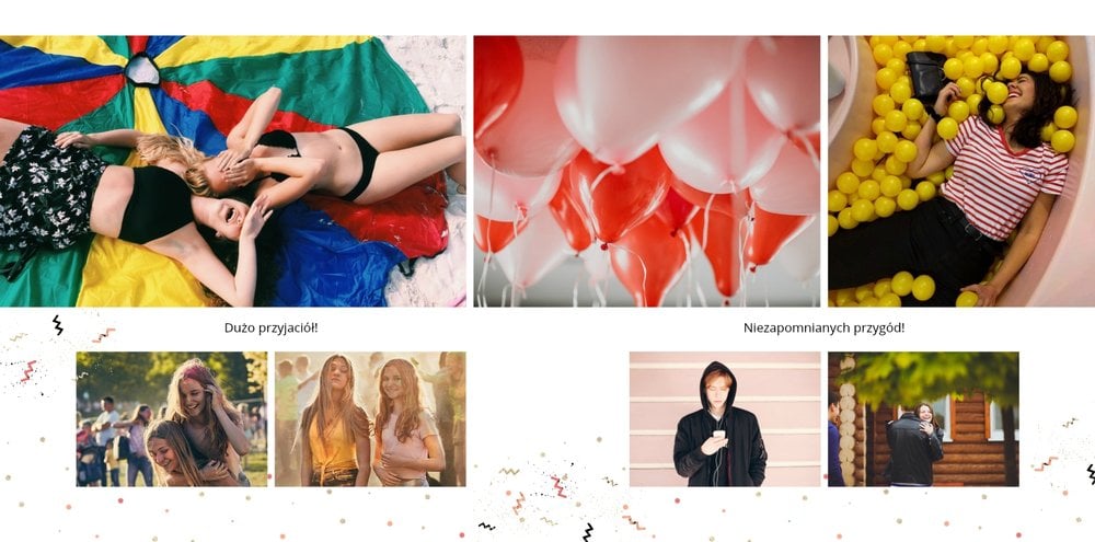 „Prezent na 18” to jednak nie jedyny szablon, który możesz wykorzystać w tworzeniu albumu na 18 urodziny. Zajrzyj do kategorii szablonów urodzinowych (kliknij tutaj) i poznaj inne propozycje graficzne, które równie świetnie sprawdzą się w tym temacie.