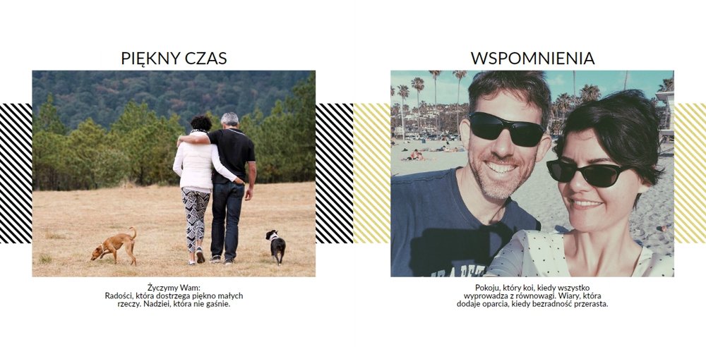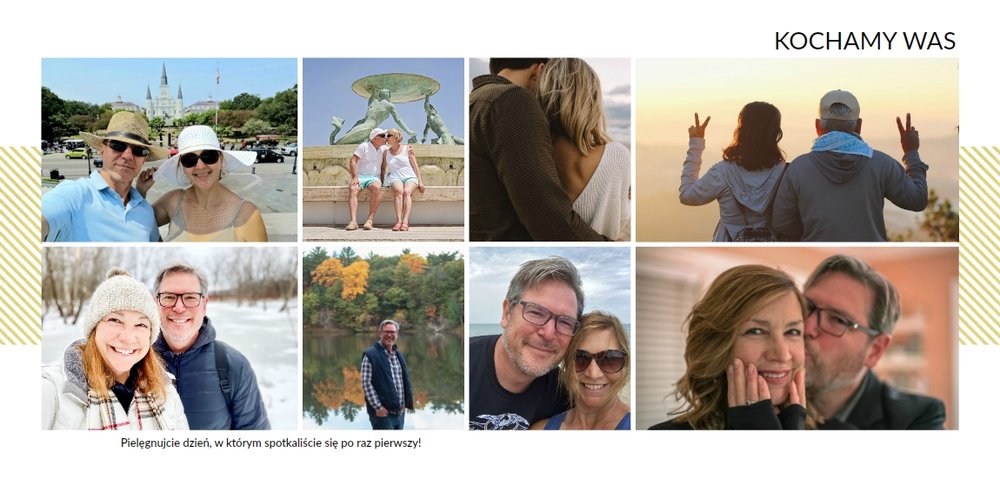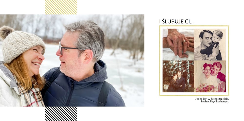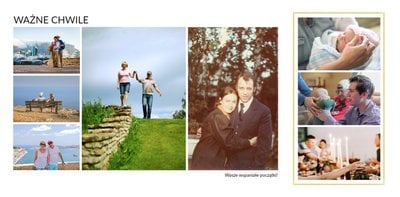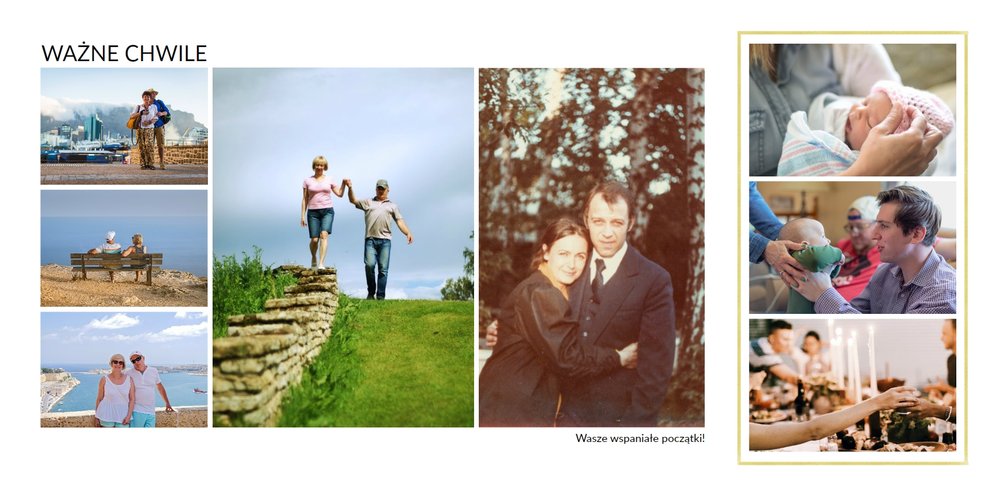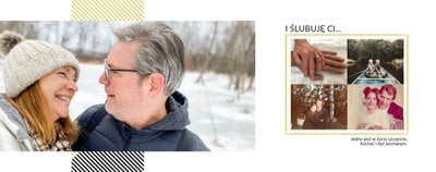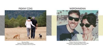 Na kolejnych stronach dodaj zdjęcia z następnych, szczęśliwych lat małżeństwa, aż do czasów obecnych. Fotografie można uzupełnić podpisami i ujmującymi cytatami.