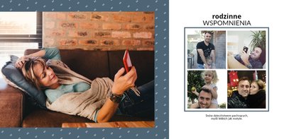 Dlatego warto postawić na mniej oczywisty upominek - ciekawą propozycją oryginalnego prezentu na 40 urodziny jest fotoksiążka z szablonem “Prezent na 40 urodziny”. Dzięki niemu szybko zaprojektujesz niezwykłą pamiątkę pełną wzruszających, rodzinnych wspomnień. Oryginalna grafika, wyjątkowe układy zdjęć i dużo miejsca na najszczersze życzenia pozwolą stworzyć fotoksiążkę, która będzie wywoływać pozytywne emocje za każdym razem, gdy obdarowywana osoba po nią sięgnie. Taka niespodzianka w formie albumu na 40 urodziny to gwarancja prezentu jedynego w swoim rodzaju!