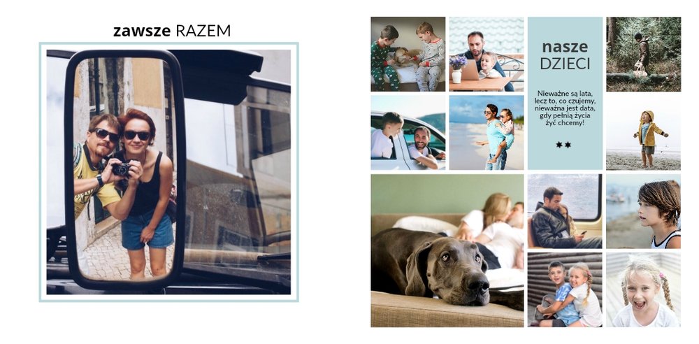 W każdym szablonie fotoksiążki Printu, poza umieszczeniem samych fotografii, możesz wpisać dowolne teksty i wstawić ozdobne grafiki. Teksty czy napisy mogą stanowić życzenia, ulubione powiedzenia solenizanta, ważne informacje, daty czy nawet opis Waszej wyjątkowej sytuacji. Gotowe teksty, które możesz bezpośrednio skopiować do fotoksiążki na prezent znajdziesz w naszej inspiracji: Życzenia na 40 urodziny.
