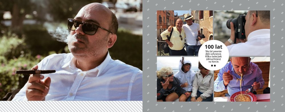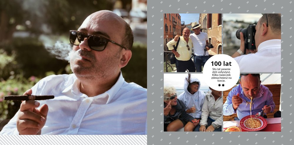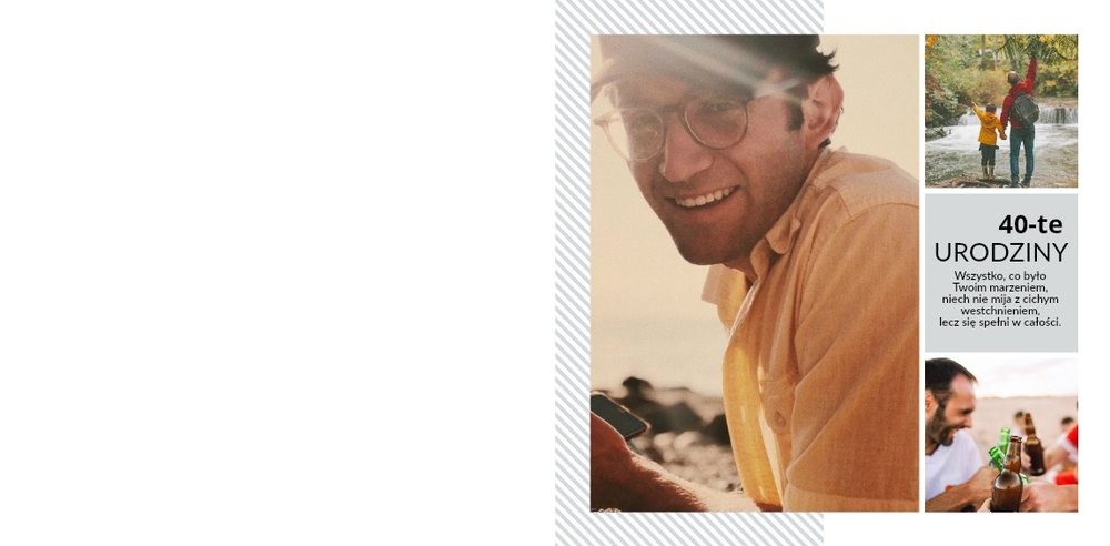 Nieco inaczej będzie wyglądać fotoksiążka prezentująca najważniejsze momenty z życia solenizanta. W tym przypadku warto zeskanować najciekawsze zdjęcia z młodych lat 40-latka i to od nich rozpocząć projekt fotoksiążki. Na każdej następnej stronie możesz umieszczać zdjęcia ilustrujące kolejne ważne momenty - ukończenie szkoły, zdjęcia z wyjątkowych podróży, ślubu czy pojawienie się dzieci. W ten sposób solenizant przeniesie się do swoich najpiękniejszych wspomnień i przypomni sobie lata słodkiej beztroski i przełomowych chwil.