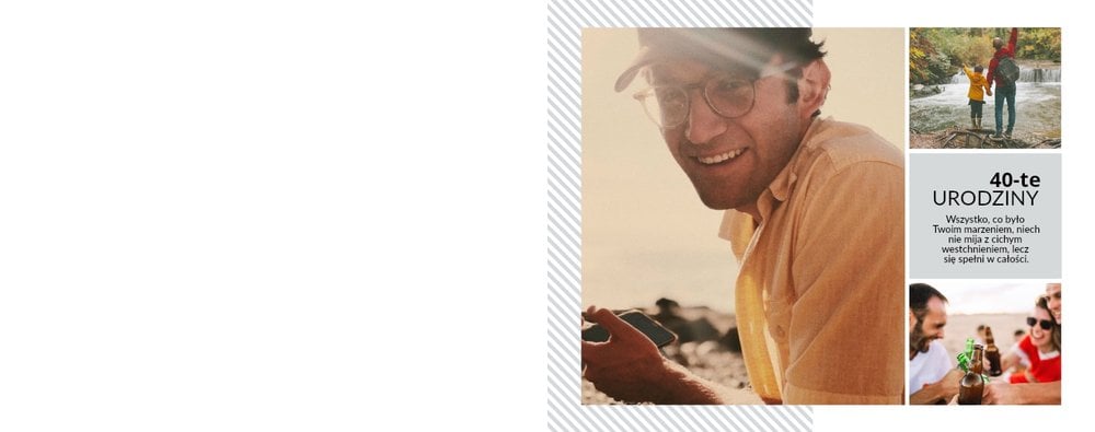 Nieco inaczej będzie wyglądać fotoksiążka prezentująca najważniejsze momenty z życia solenizanta. W tym przypadku warto zeskanować najciekawsze zdjęcia z młodych lat 40-latka i to od nich rozpocząć projekt fotoksiążki. Na każdej następnej stronie możesz umieszczać zdjęcia ilustrujące kolejne ważne momenty - ukończenie szkoły, zdjęcia z wyjątkowych podróży, ślubu czy pojawienie się dzieci. W ten sposób solenizant przeniesie się do swoich najpiękniejszych wspomnień i przypomni sobie lata słodkiej beztroski i przełomowych chwil.