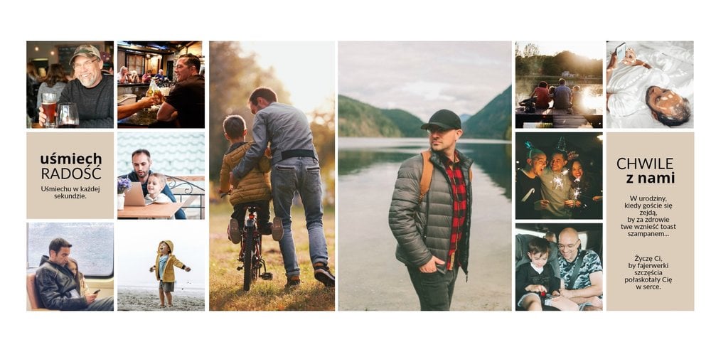Dlatego warto postawić na mniej oczywisty upominek - ciekawą propozycją oryginalnego prezentu na 40 urodziny jest fotoksiążka z szablonem “Prezent na 40 urodziny”. Dzięki niemu szybko zaprojektujesz niezwykłą pamiątkę pełną wzruszających, rodzinnych wspomnień. Oryginalna grafika, wyjątkowe układy zdjęć i dużo miejsca na najszczersze życzenia pozwolą stworzyć fotoksiążkę, która będzie wywoływać pozytywne emocje za każdym razem, gdy obdarowywana osoba po nią sięgnie. Taka niespodzianka w formie albumu na 40 urodziny to gwarancja prezentu jedynego w swoim rodzaju!
