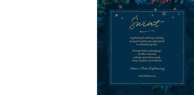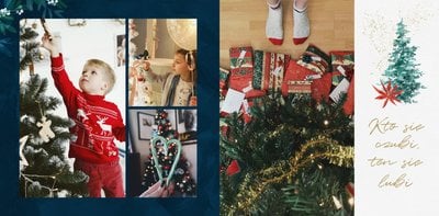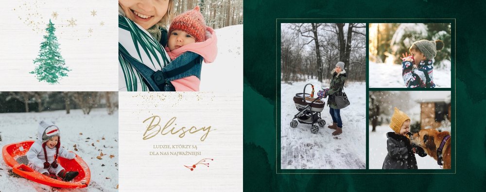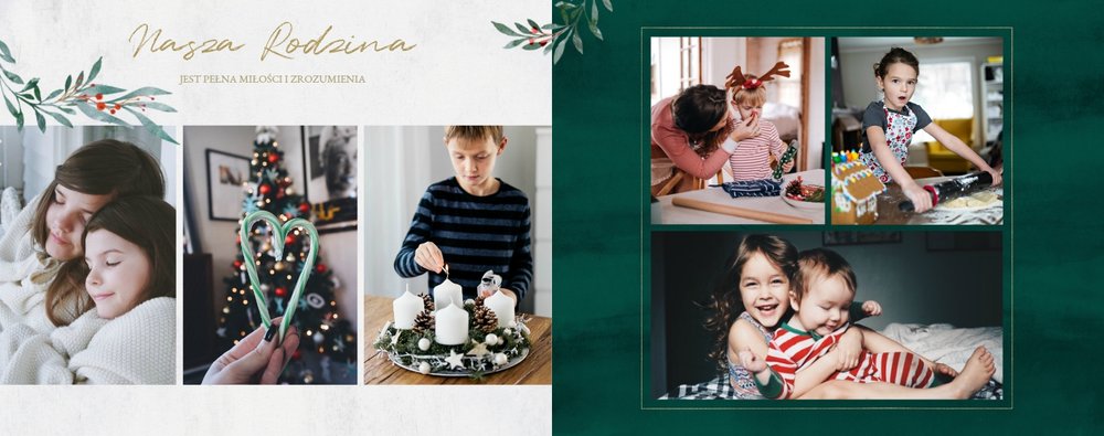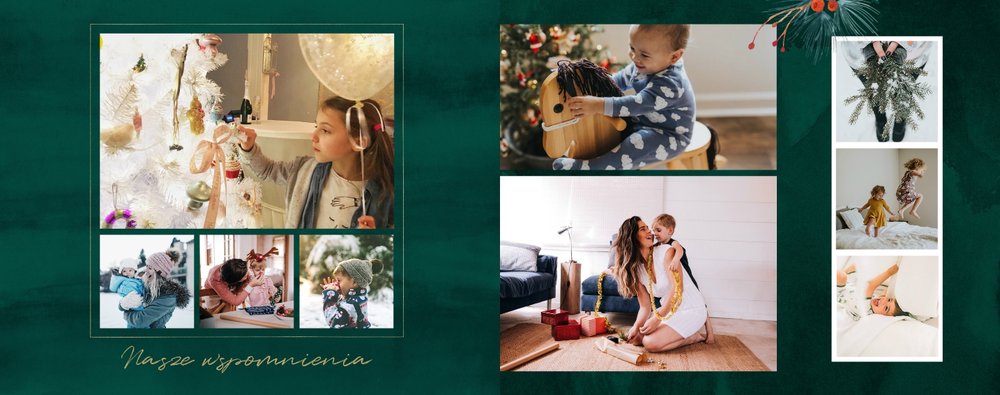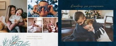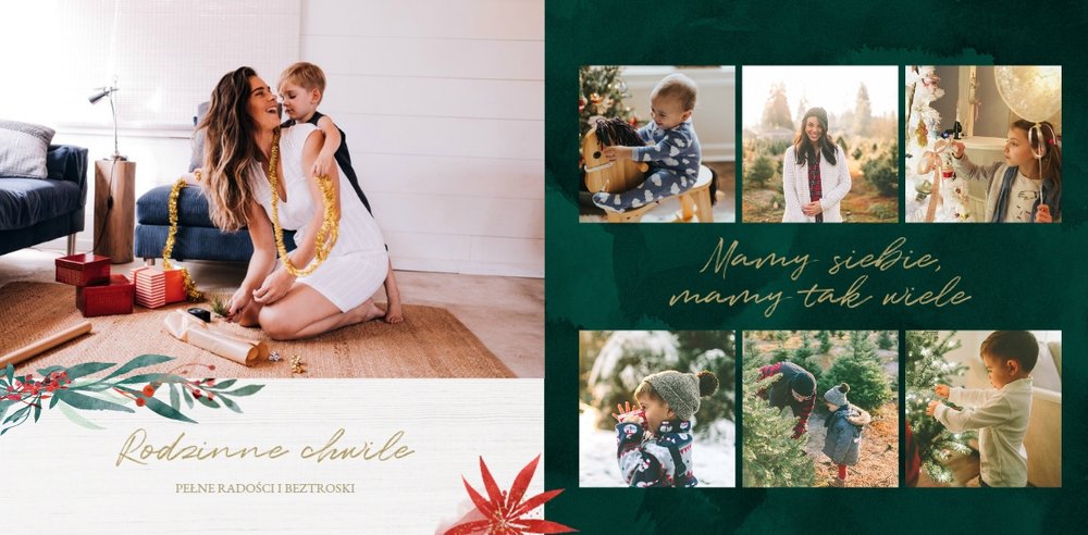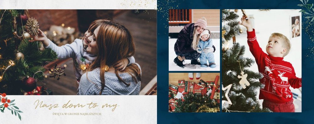 Szablon "Prezent na Boże Narodzenie" to dopracowana w każdym calu propozycja prezentu pod choinkę dla Ciebie i Twoich bliskich. Pełna ciepła i magii grafika obudzi najlepsze wspomnienia, a jednocześnie stanie się rodzinną pamiątka. Wewnątrz szablonu odnajdziesz odcienie granatu, zieleni i czerwieni w otoczeniu szlachetnego złota. To wszystko sprawi, że fotoksiążka z szablonem "Prezent na Boże Narodzenie" nie przejdzie bez echa wśród sterty prezentów.