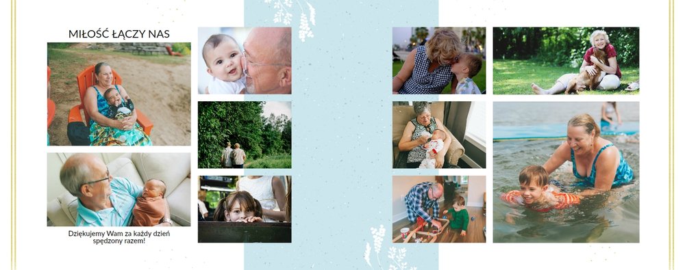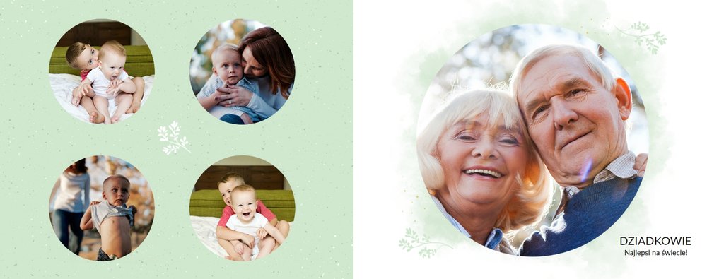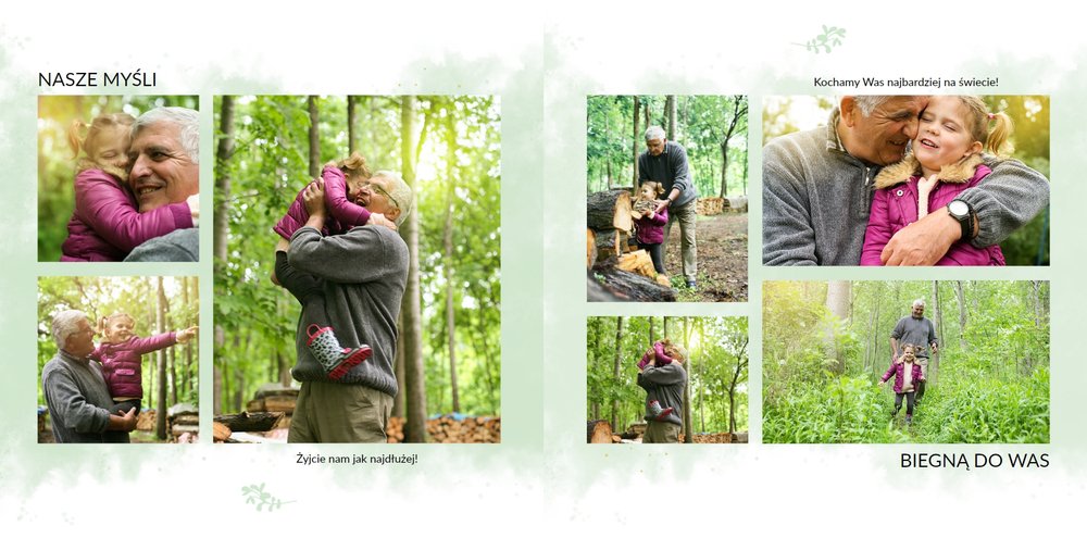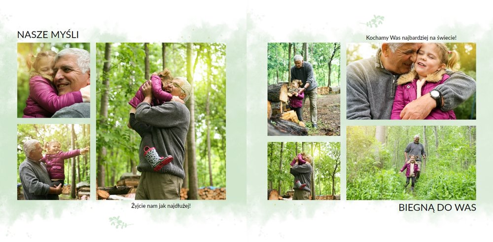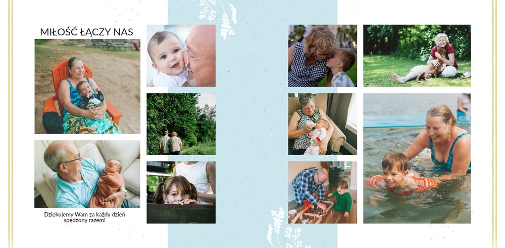 Ponadto taki innowacyjny album dla Dziadków możesz niemal w pełni spersonalizować - wybierz jeden spośród dostępnych szablonów, a następnie rozmieść zdjęcia i rozmaite elementy graficzne w dowolny sposób.