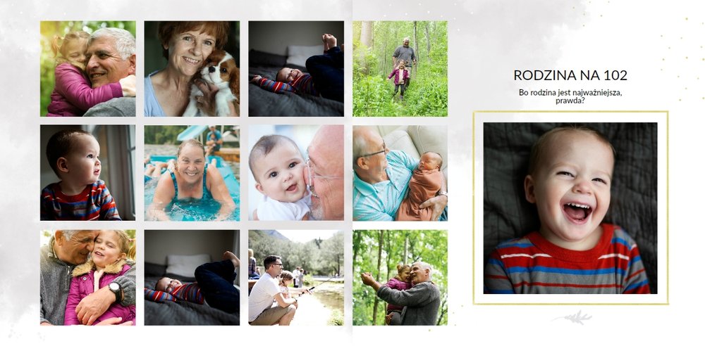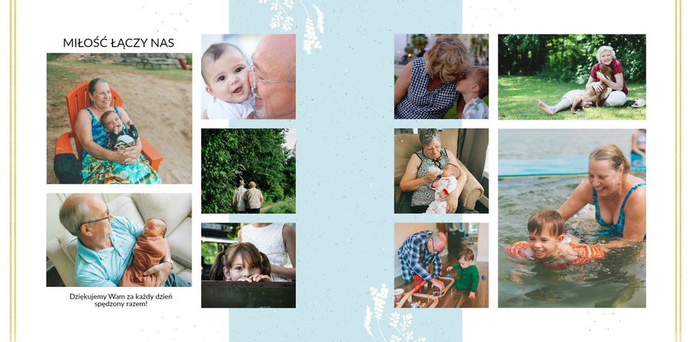 - Jeśli masz ze swoimi Dziadkami bliski kontakt, z pewnością nie będziesz miał trudności z doborem zdjęć, na których jesteście razem. Fotoksiążkę dla Dziadków możesz wypełnić Waszymi wspólnymi chwilami.