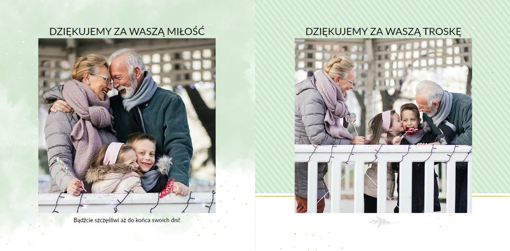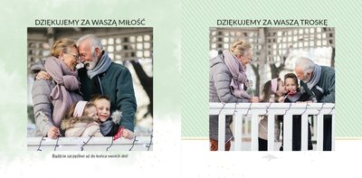- Innym, ciekawym rozwiązaniem jest zaprojektowanie dwóch osobnych albumów na zdjęcia dla Dziadków. Wypełnij je zdjęciami poświęconymi konkretnym osobom.