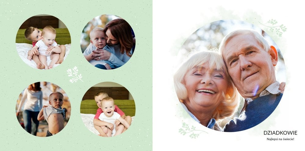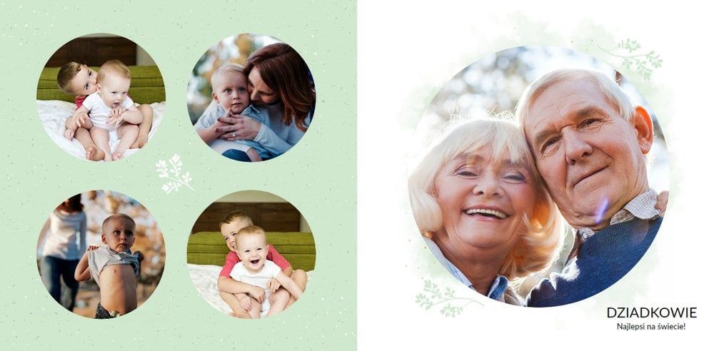 Ponadto taki innowacyjny album dla Dziadków możesz niemal w pełni spersonalizować - wybierz jeden spośród dostępnych szablonów, a następnie rozmieść zdjęcia i rozmaite elementy graficzne w dowolny sposób.