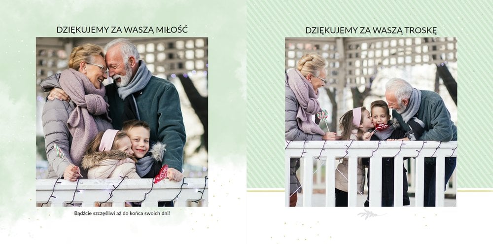 - Innym, ciekawym rozwiązaniem jest zaprojektowanie dwóch osobnych albumów na zdjęcia dla Dziadków. Wypełnij je zdjęciami poświęconymi konkretnym osobom.