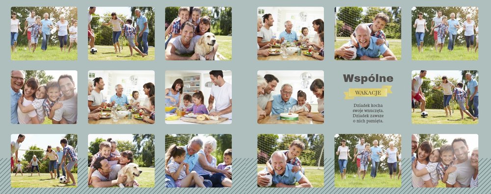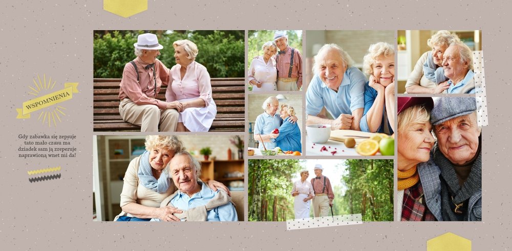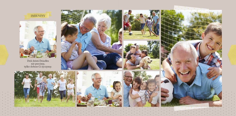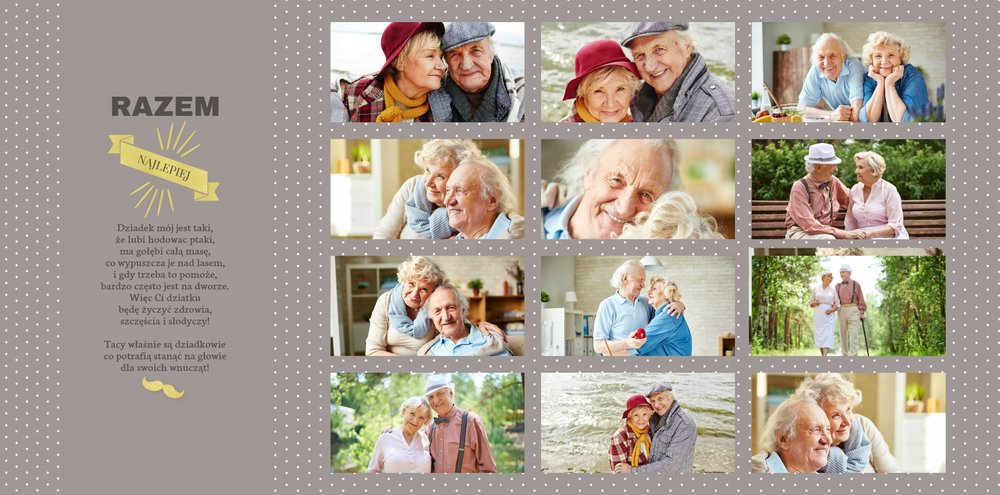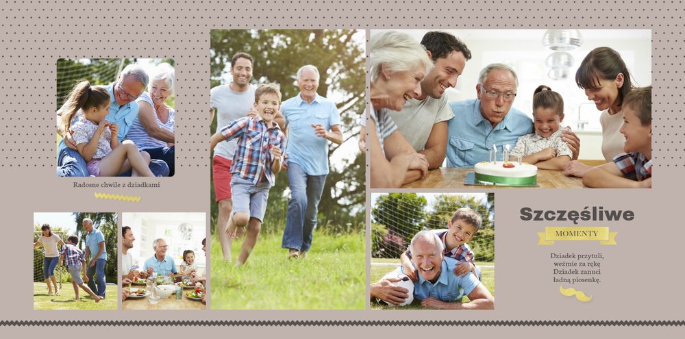 Fotoksiążka z szablonem Prezent na dzień dziadka dedykowany jest wszystkim kochającym wnukom , którzy pragną w tym wyjątkowym dniu sprawić swoim Dziadkom radość. Zdjęcia połączone z pięknym motywem szablonu oraz z oryginalnymi wierszykami, wywołają u Dziadka pozytywne emocje. Zaprojektuj rodzinną książkę i spraw Dziadkowi prezent na lata.