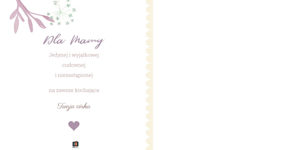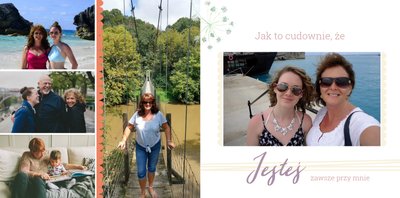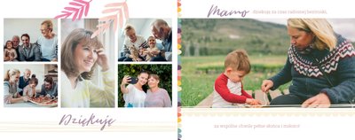 Prezent na Dzień Mamy to szablon z którym stworzysz piękną fotoksiążkę dla najważniejszej osoby w Twoim życiu. Zbierz rodzinne fotografie, dodaj najszczersze życzenia i zaprojektuj książkę, która wręczona w maju jako prezent dla mamy, stanie się pamiątką na długie, długie lata. Prezent na Dzień Mamy to pełen wiosennych kolorów szablon z mnóstwem miejsc na ulubione zdjęcia oraz z pięknymi cytatami o miłości do Mamy. Spraw radość Twojej Mamie wręczając jej fotoksiążkę Printu!
