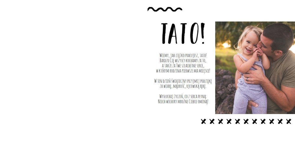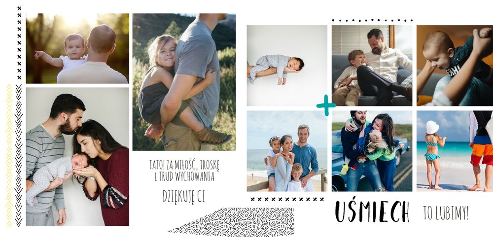 Z szablonem Prezent na Dzień Ojca zaprojektujesz piękny prezent dla taty, który będzie przypominać o cudownych, rodzinnych chwilach za każdym razem, gdy Twój tata po niego sięgnie. Książka z tym szablonem idealnie pokaże Twoją wdzięczność i radość z każdej chwili spędzonej razem. Nowoczesna grafika, piękne kolory, miejsce na najszczersze życzenia sprawią, że fotoksiążka z szablonem Prezent na Dzień Ojca będzie pamiątką na długie lata.