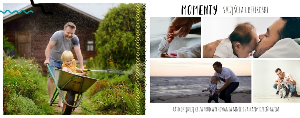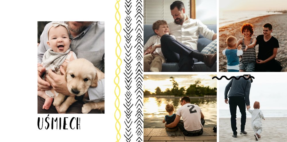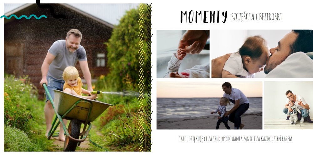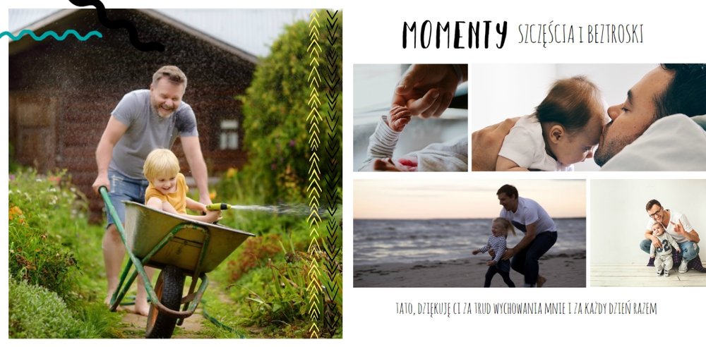 Z szablonem Prezent na Dzień Ojca zaprojektujesz piękny prezent dla taty, który będzie przypominać o cudownych, rodzinnych chwilach za każdym razem, gdy Twój tata po niego sięgnie. Książka z tym szablonem idealnie pokaże Twoją wdzięczność i radość z każdej chwili spędzonej razem. Nowoczesna grafika, piękne kolory, miejsce na najszczersze życzenia sprawią, że fotoksiążka z szablonem Prezent na Dzień Ojca będzie pamiątką na długie lata.
