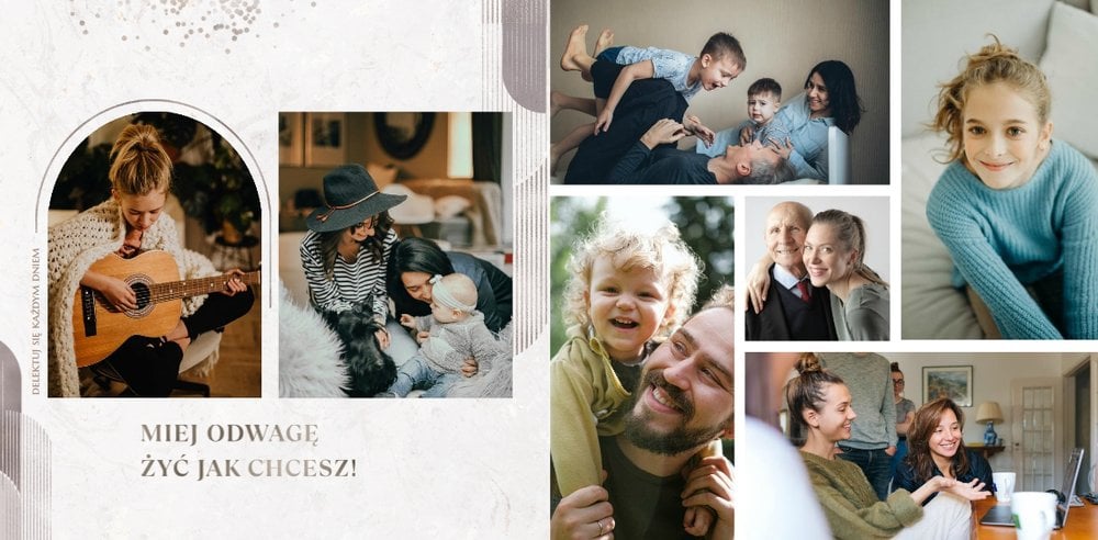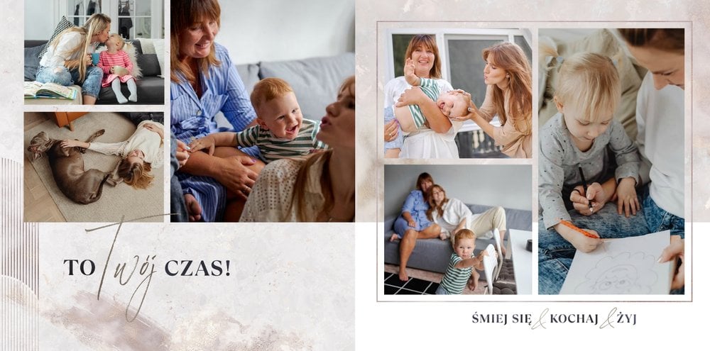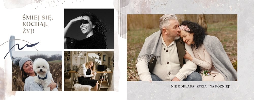 Jeśli pragniesz podarować prezent, który nie będzie banalny, a do tego pozwoli Ci przekazać szczere życzenia w trwałej oprawie to fotoksiążka sprawdzi się w tej roli znakomicie. Szablon "Prezent na okrągłe urodziny" to magiczny motyw, który skrywa w sobie mnóstwo ciepłych słów, natomiast piękne metaliczne grafiki przyozdobią zdjęcia zachowane na stronach projektu. Uniwersalna kolorystyka i design sprawiają, że szablon ten sprawdzi się jako prezent dla osoby w każdym wieku, zarówno dla kobiety, jak i mężczyzny.