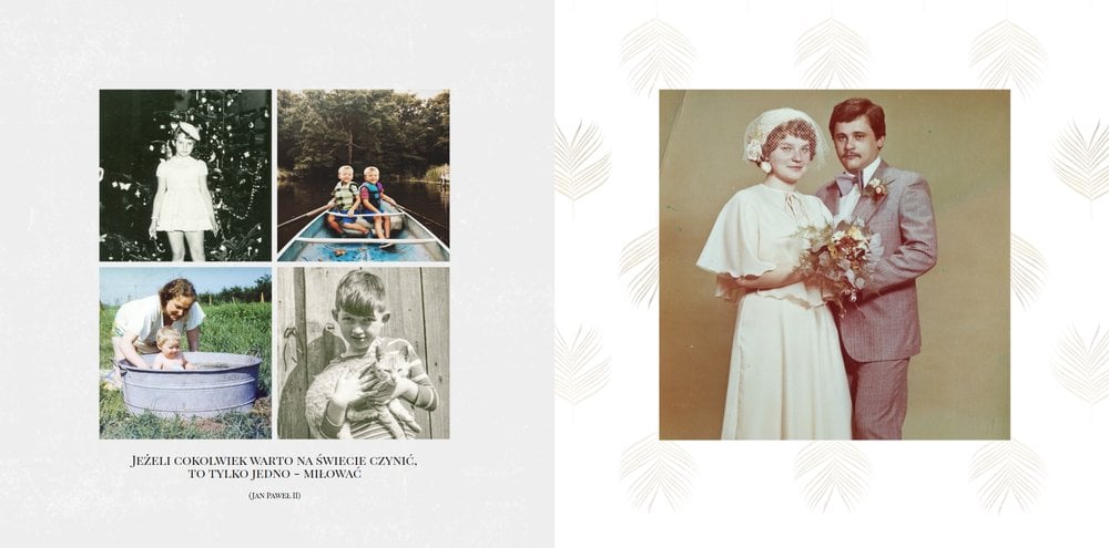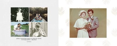 Prezent na podziękowanie to szablon, z którym zaprojektujecie najpiękniejszą fotoksiążkę z podziękowaniami dla rodziców. Prezent dla rodziców powinien być wyjątkowy i powinien przypominać o Waszej wdzięczności za trud, jaki włożyli oni w Wasze wychowanie. Oryginalny szablon z delikatną grafiką, wzruszającymi tekstami oraz pięknymi układami zdjęć pozwoli zaprojektować fotoksiążkę lub fotoalbum, który będzie wzbudzał wzruszenie u Waszych rodziców przez wiele, wiele lat.