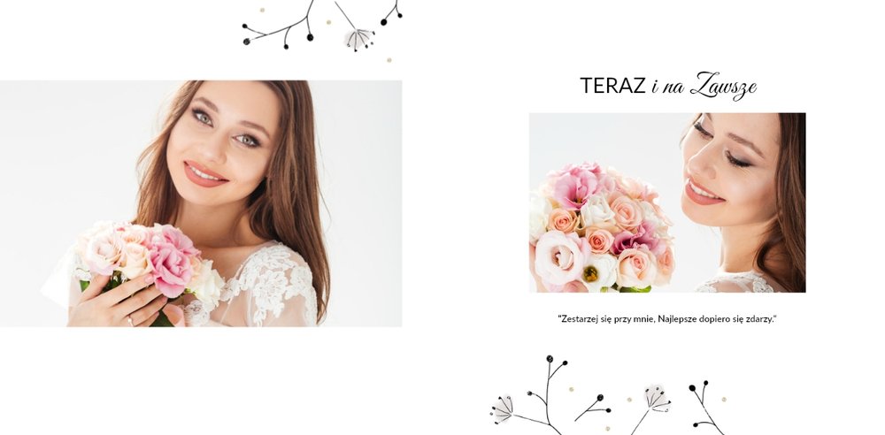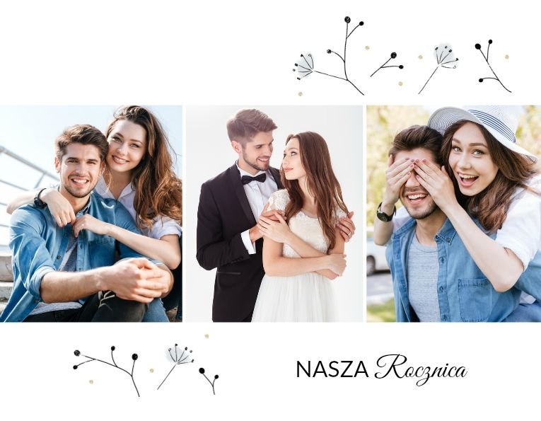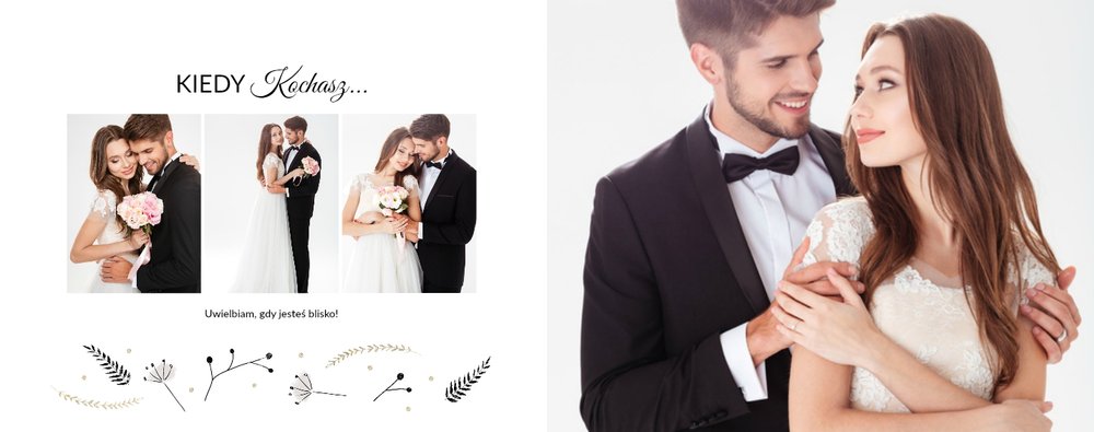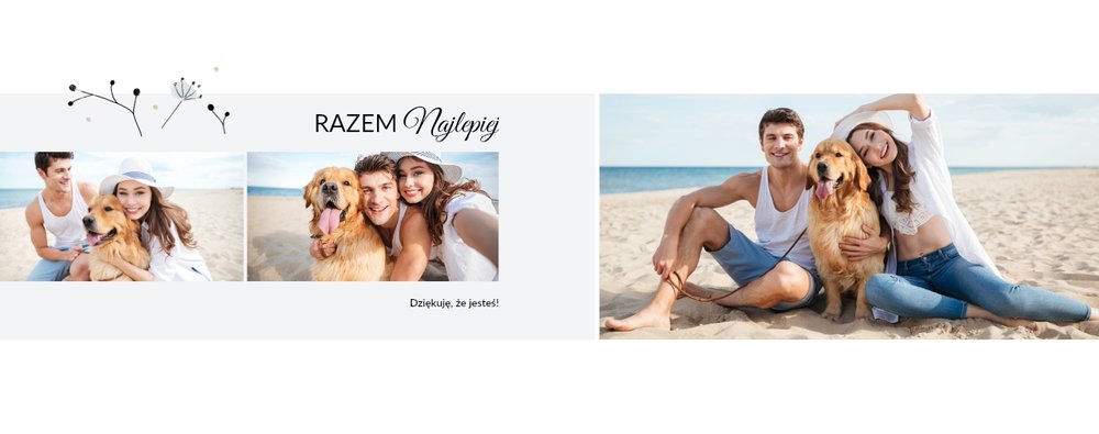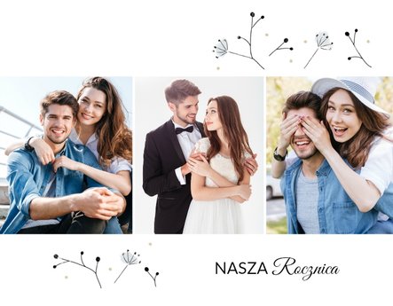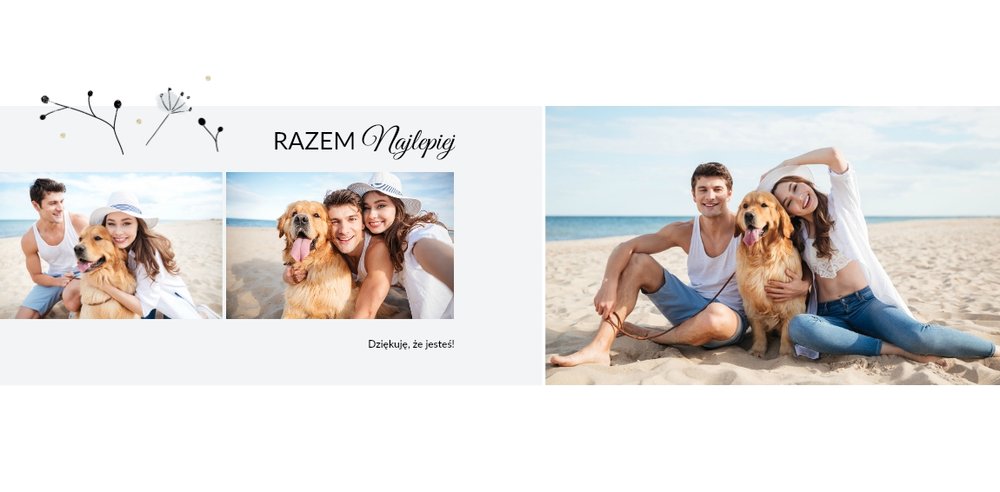 Z szablonem Prezent na rocznicę ślubu zaprojektujesz piękną pamiątkę pełną wzruszających wspomnień zachowanych we wspólnych fotografiach. Cała historia Waszej miłości w jednym miejscu! Delikatna grafika, oryginalne układy zdjęć i miłosne sentencje sprawią, że fotoksiążka stanie się pamiątką na długie lata!