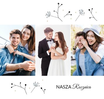 Z szablonem Prezent na rocznicę ślubu zaprojektujesz piękną pamiątkę pełną wzruszających wspomnień zachowanych we wspólnych fotografiach. Cała historia Waszej miłości w jednym miejscu! Delikatna grafika, oryginalne układy zdjęć i miłosne sentencje sprawią, że fotoksiążka stanie się pamiątką na długie lata!