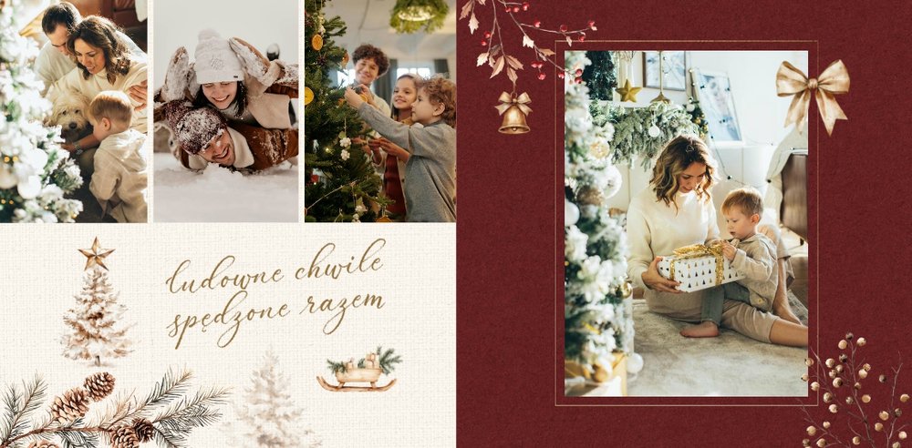 Wypełnij fotoksiążkę świątecznymi zdjęciami (np. ze świątecznej sesji zdjęciowej) i stwórz unikatowy prezent dla siebie i swoich bliskich.