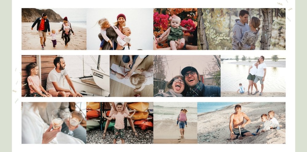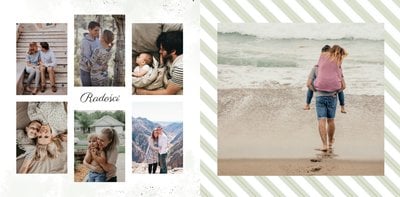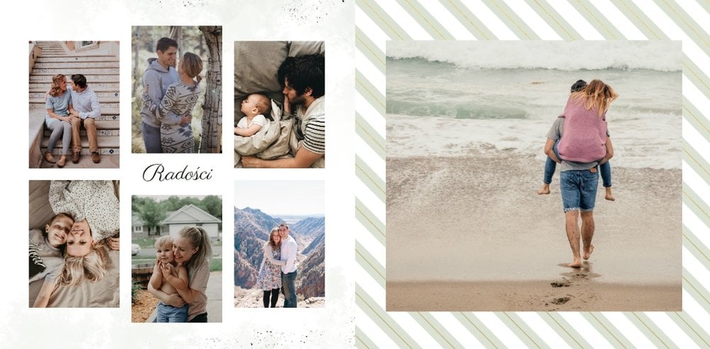 Uniwersalna forma szablonu “Prezent na urodziny” pozwoli stworzyć Ci w pełni spersonalizowany projekt. Na każdej stronie możesz dodać życzenia czy wzruszające cytaty, a wielkość komórek zdjęciowych i elementy na stronie dostosować do własnych potrzeb.