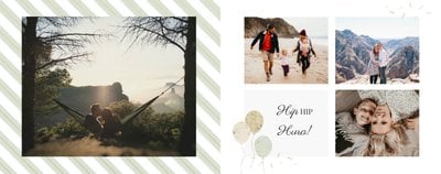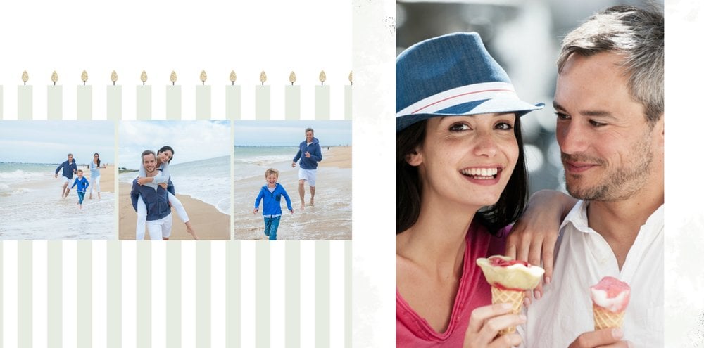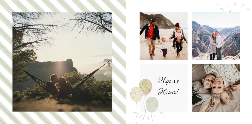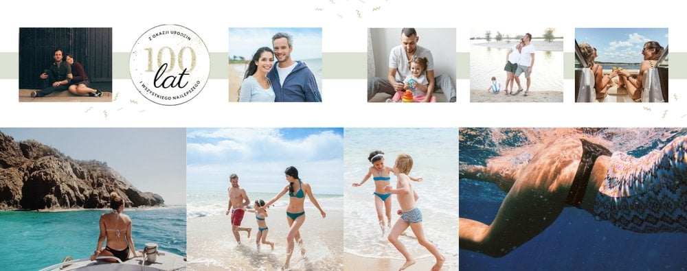 Uniwersalna forma szablonu “Prezent na urodziny” pozwoli stworzyć Ci w pełni spersonalizowany projekt. Na każdej stronie możesz dodać życzenia czy wzruszające cytaty, a wielkość komórek zdjęciowych i elementy na stronie dostosować do własnych potrzeb.